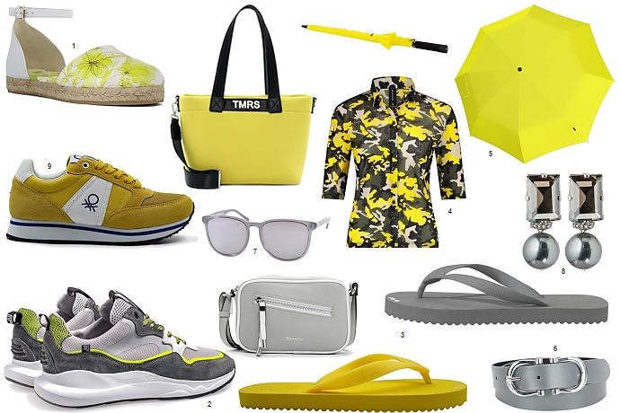 GRAU und GELB ist ein Ensemble, das hervorragend kombiniert werden kann, ohne dass eine der beiden Farben dominiert. Wem Gelb generell zu auffällig ist oder wer eine Disharmonie zu Haut und Haaren befürchtet, den Trend aber trotzdem mitmachen will, kombiniert das neue Gelb mit Grau oder setzt mit Schuhen, Taschen & Accessoires Akzente.